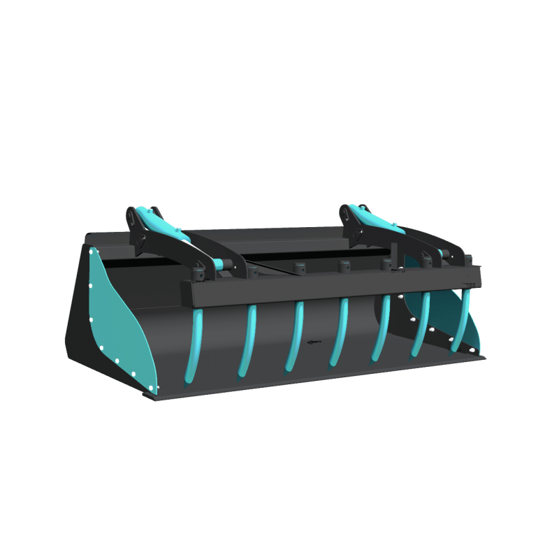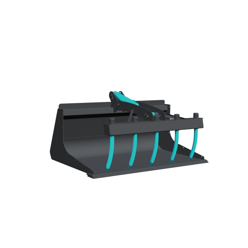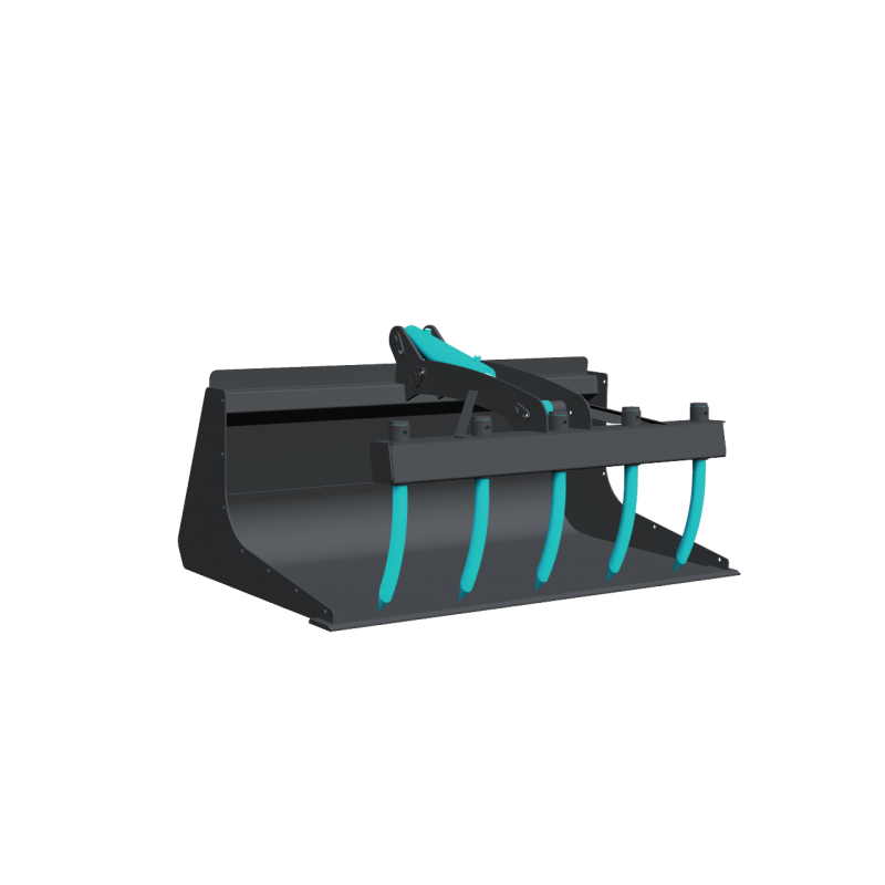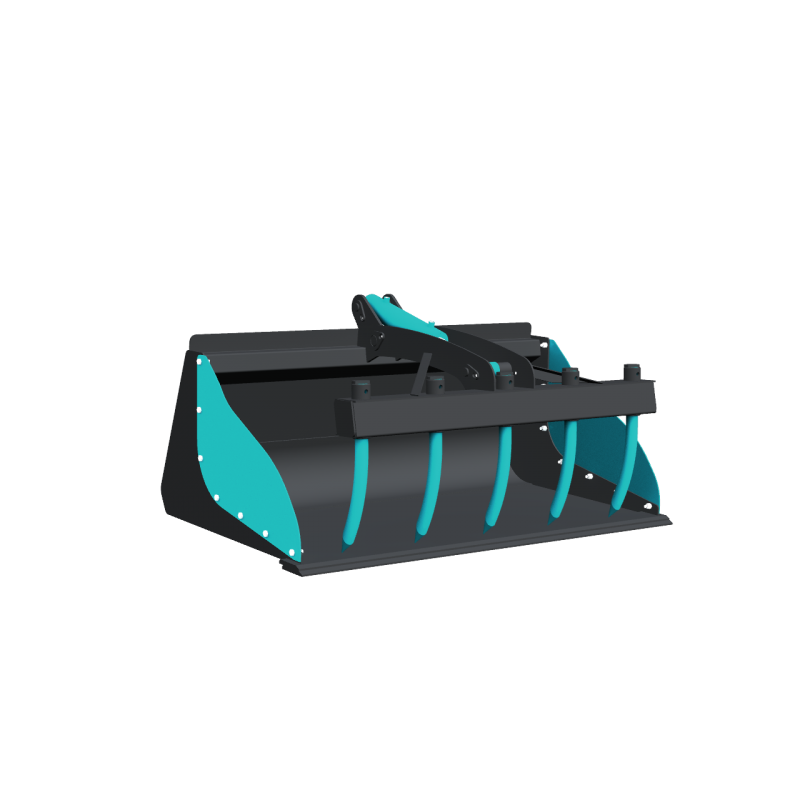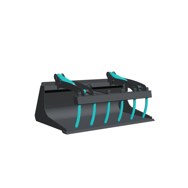 Bucket with forged tines grapple for loaders and tractors with power range from 40 hp to 70 hp