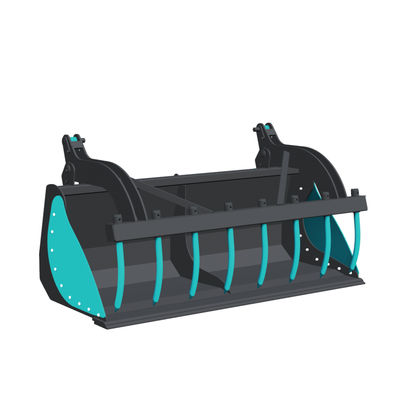 Bucket with forged tines grapple for loaders and tractors with power range from 80 hp to 130 hp