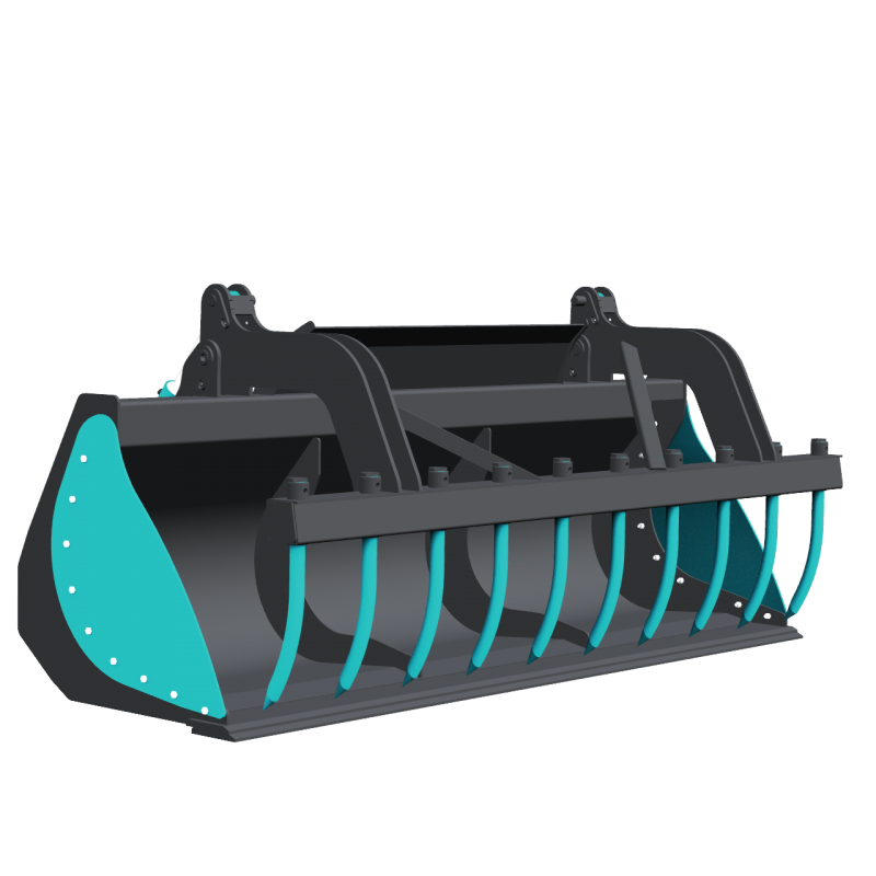 Bucket with forged tines grapple for loaders and tractors with power range from 100 hp