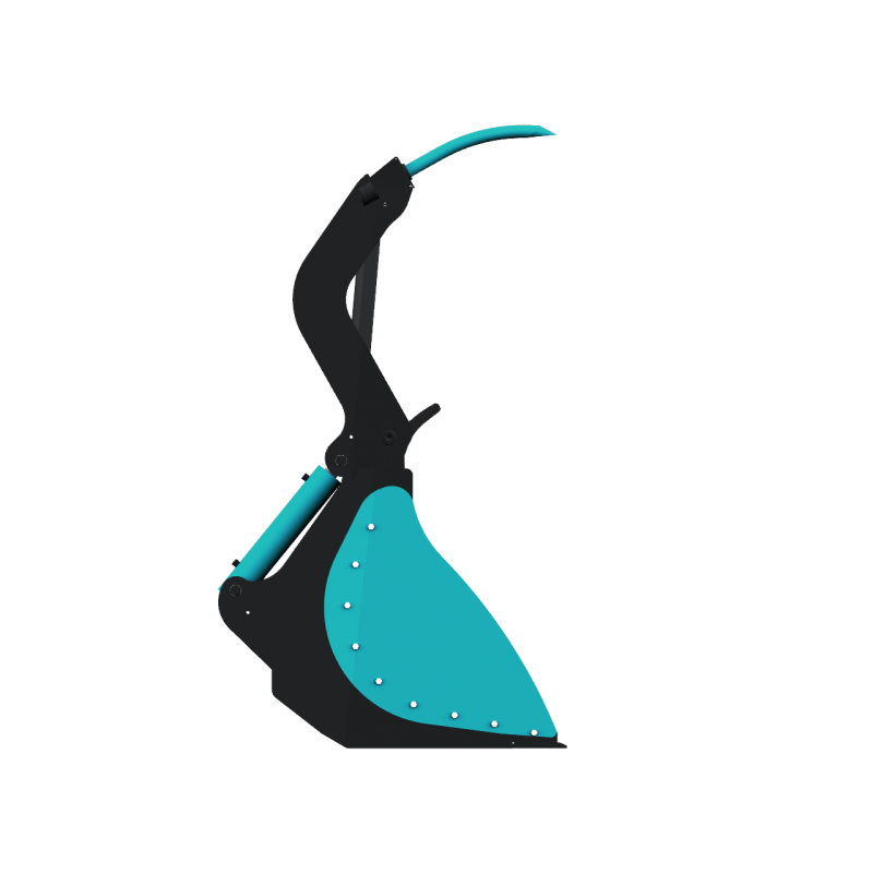 Maximum opening grapple for working against walls. In the opened position, the grapple teeth remains behind the cutting edge.