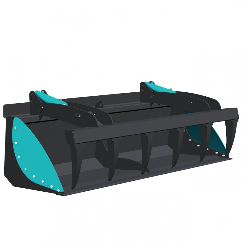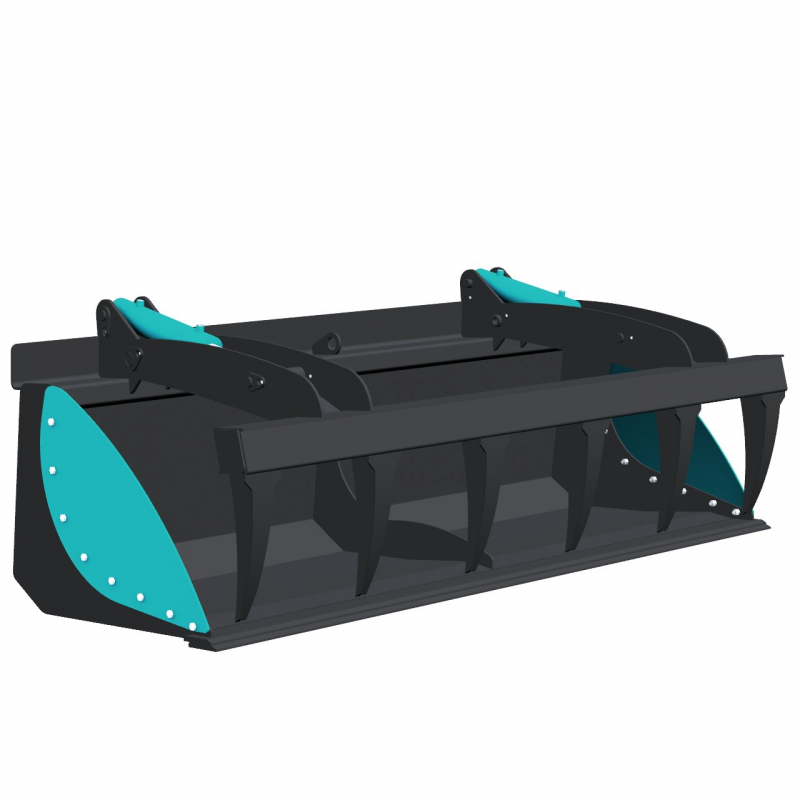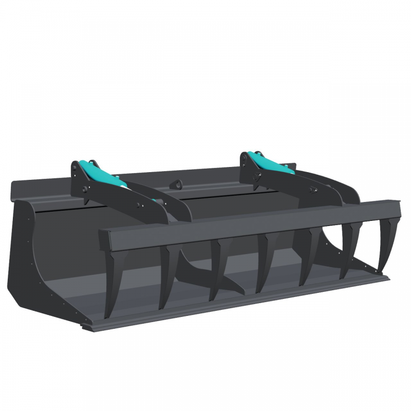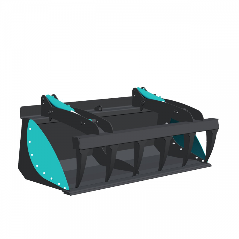 Bucket with multi purpose grab for loaders and tractors with power range from 50 hp to 100 hp