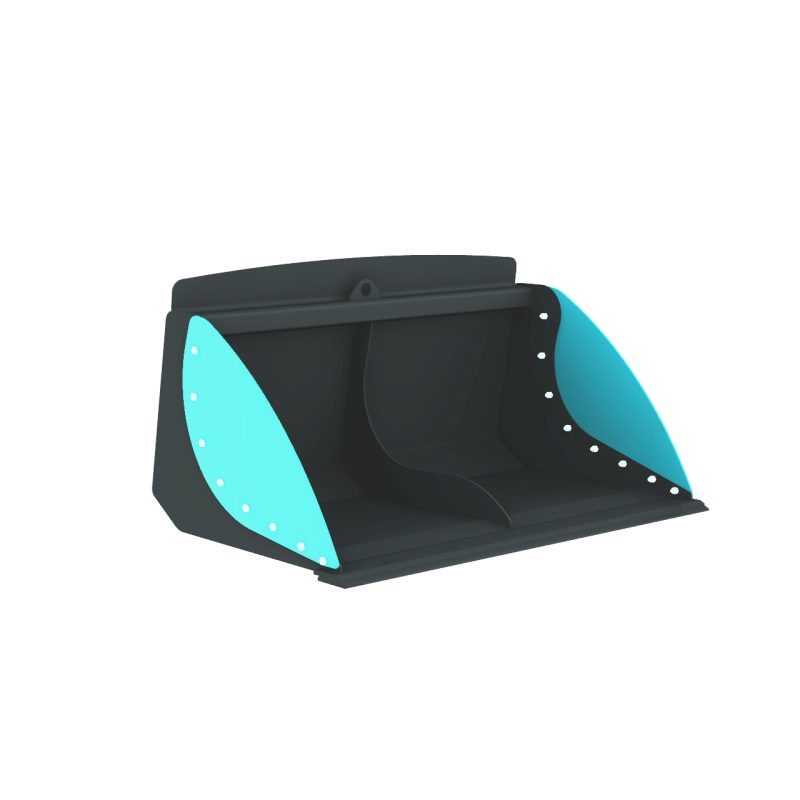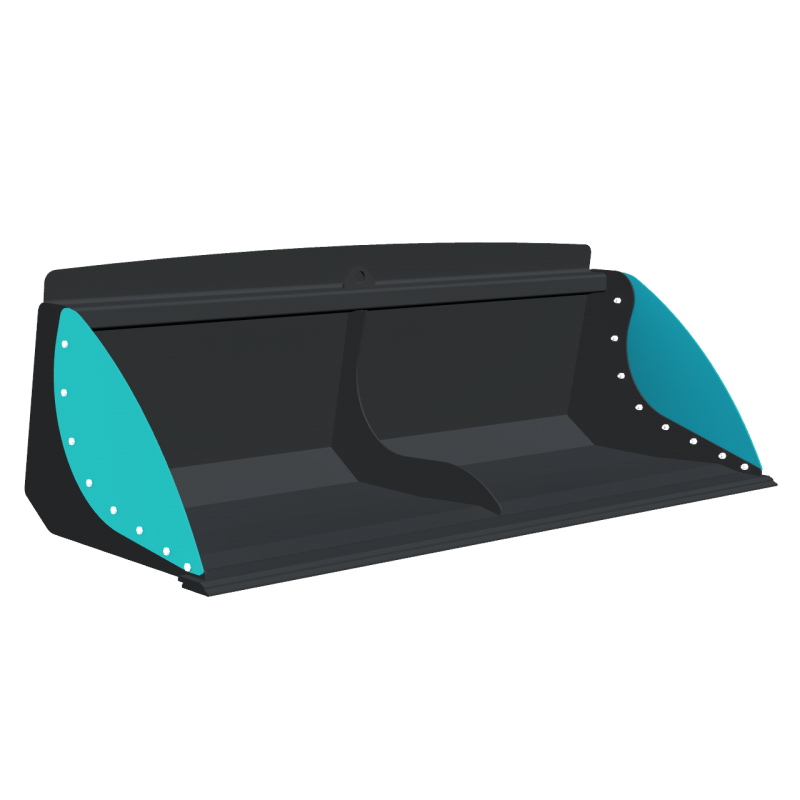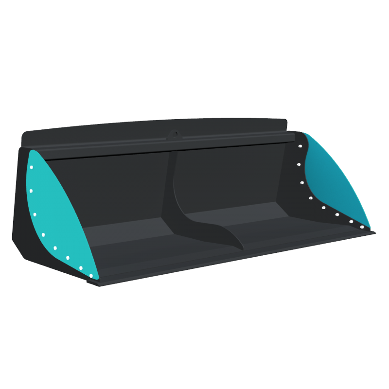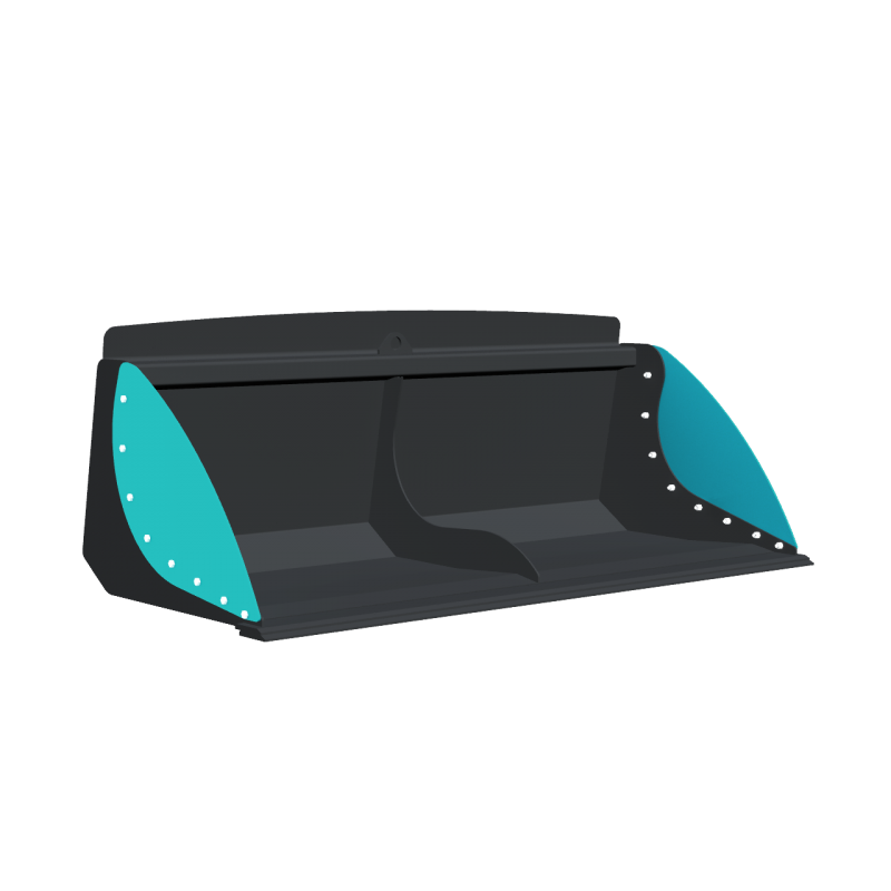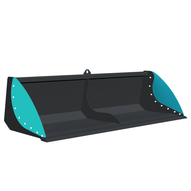 Bucket with removable end plates for tractors and loader with 50 hp to 100 hp