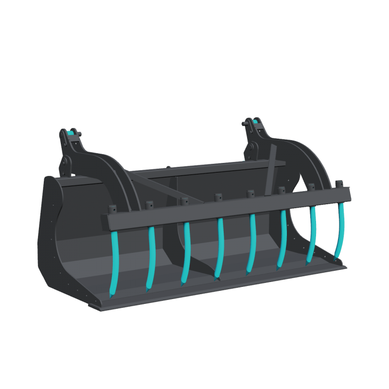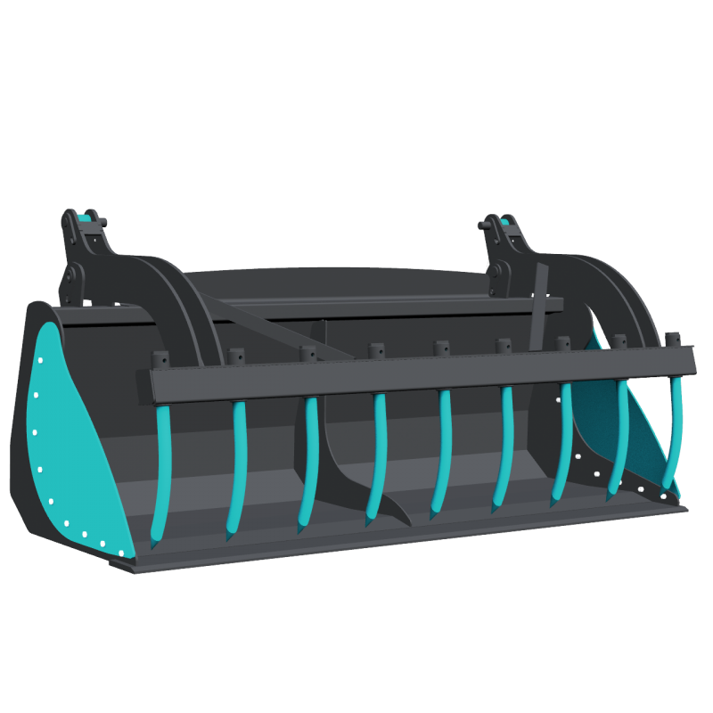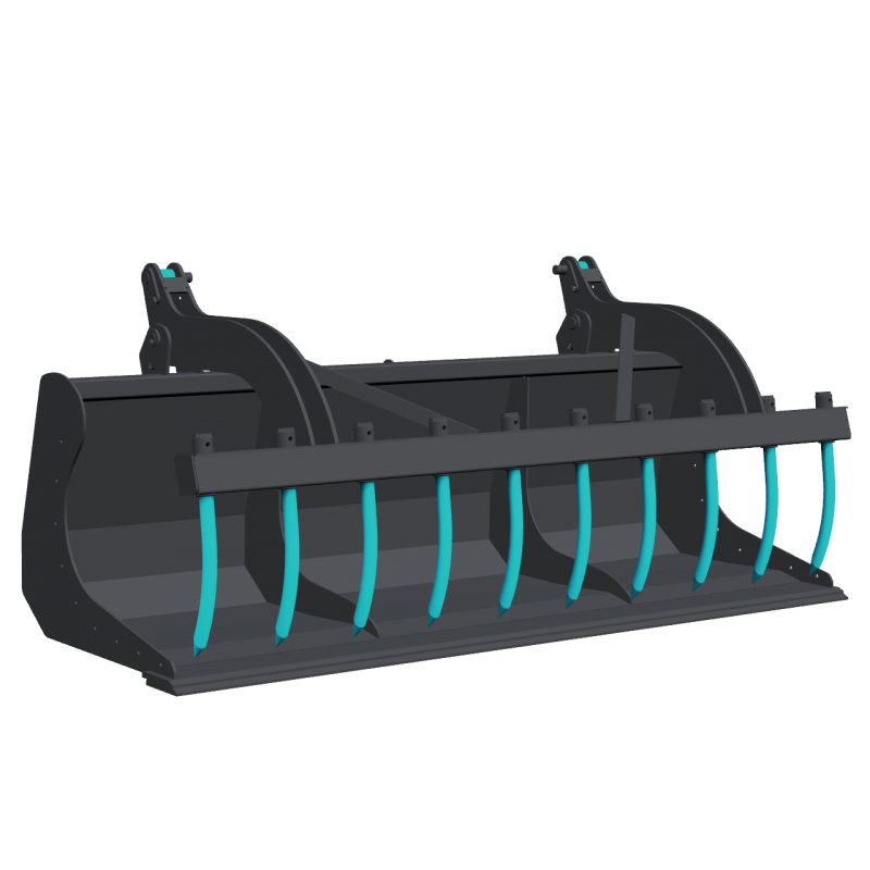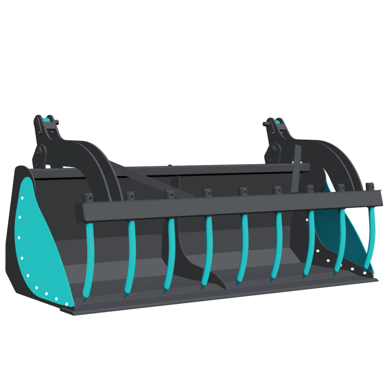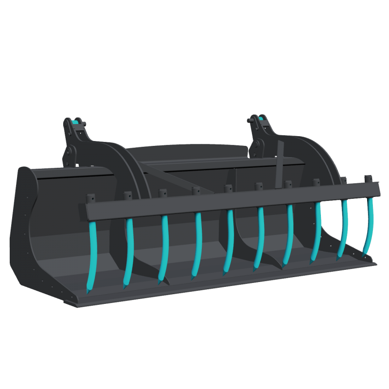 Benne multifonction à grappin et dents forgées pour chargeurs et tracteurs ayant une puissance de 80 hp à 130 hp