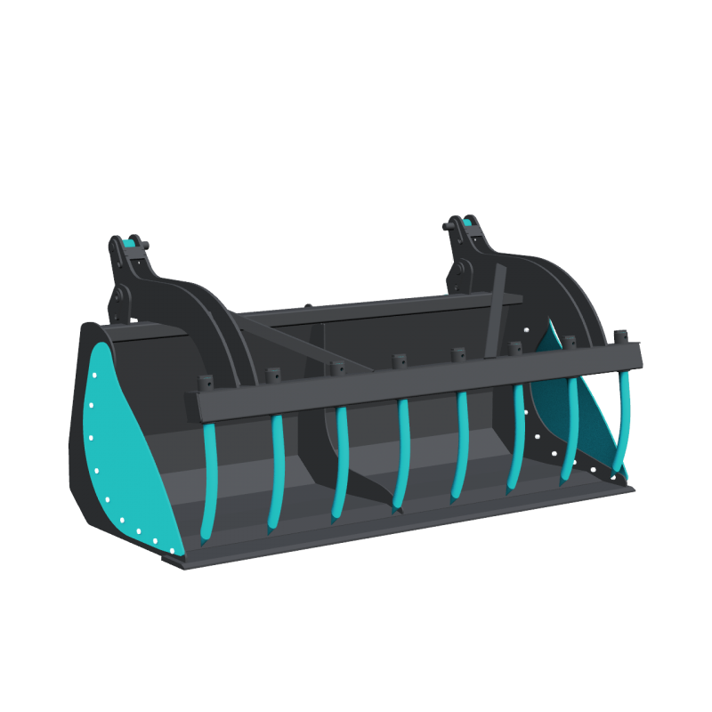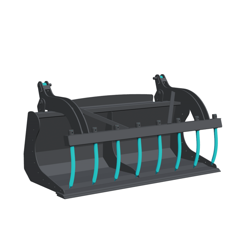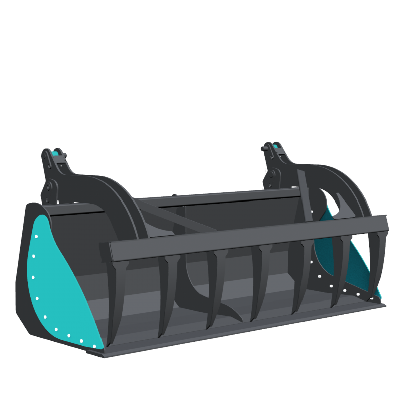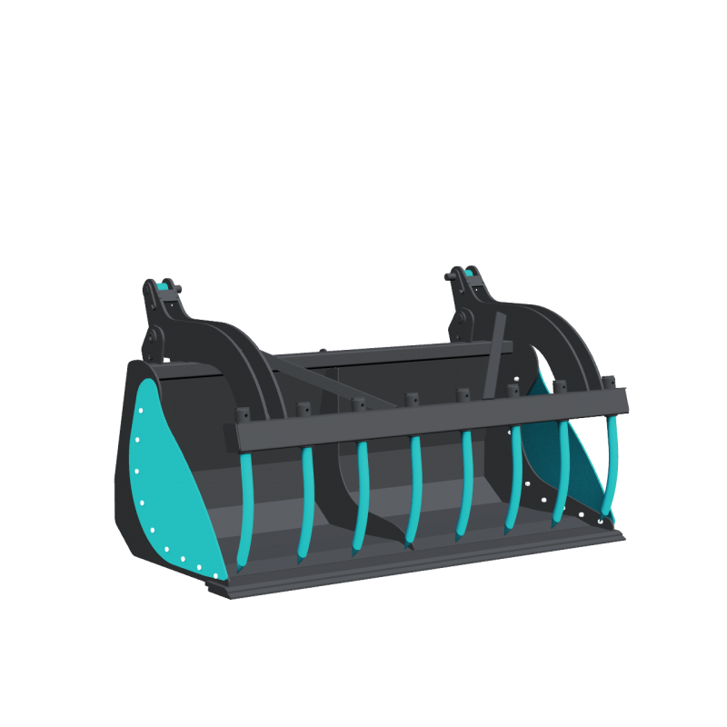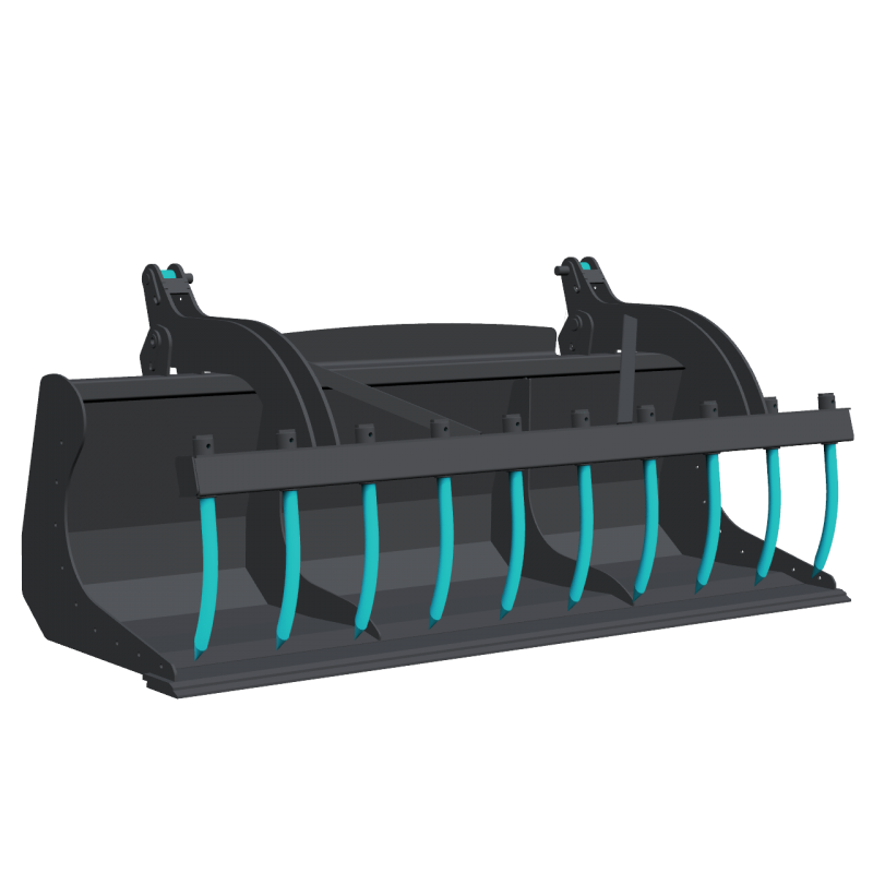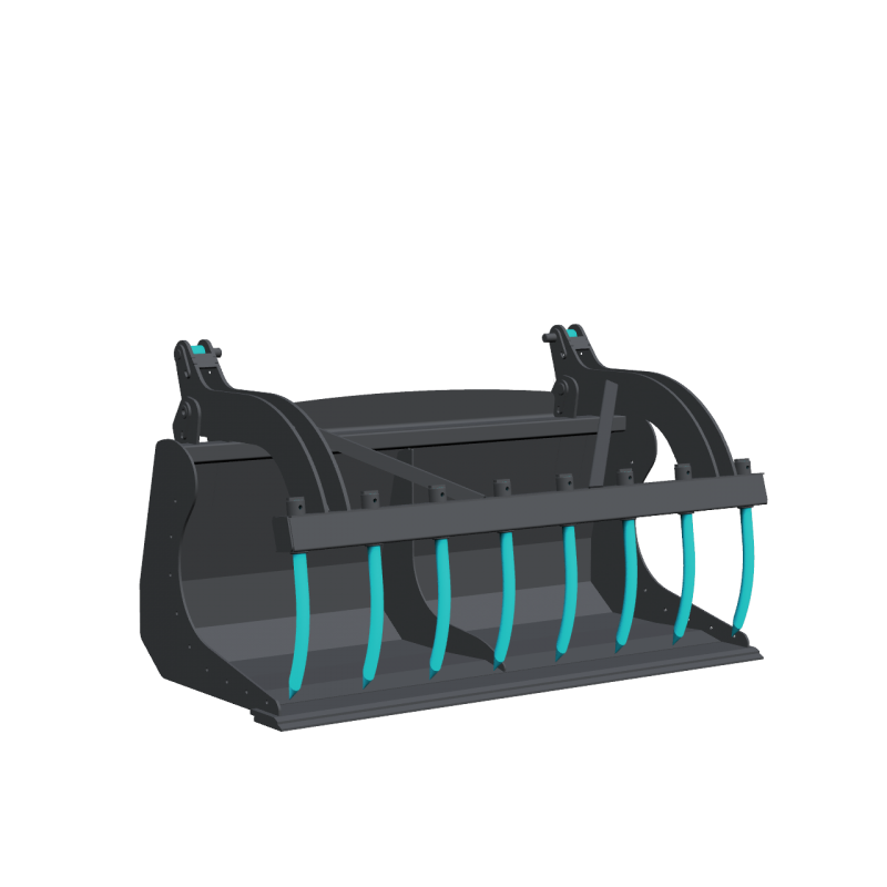 Benne multifonction à grappin et dents mécano-soudées pour chargeurs et tracteurs ayant une puissance de 80 hp à 130 hp