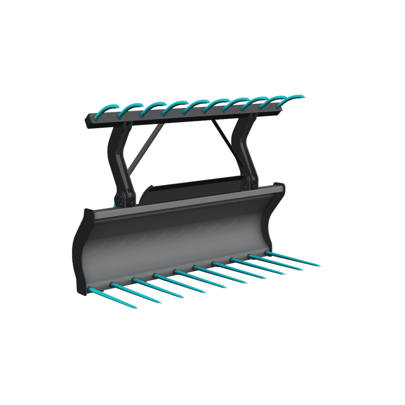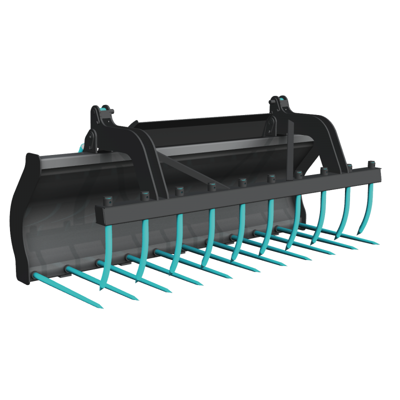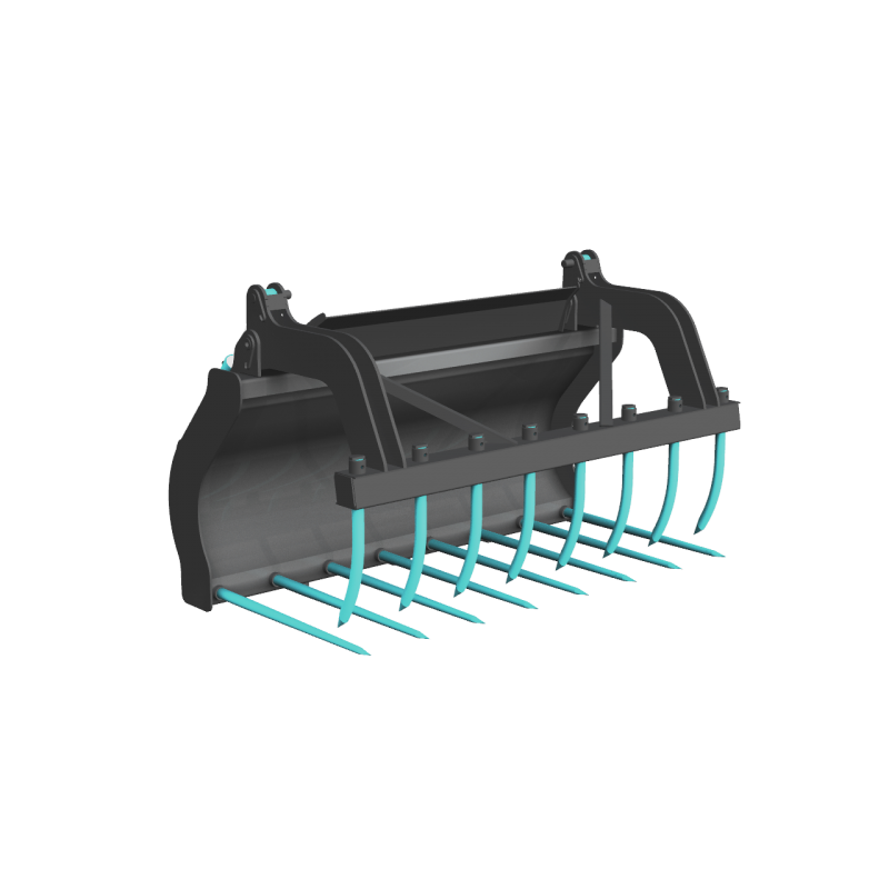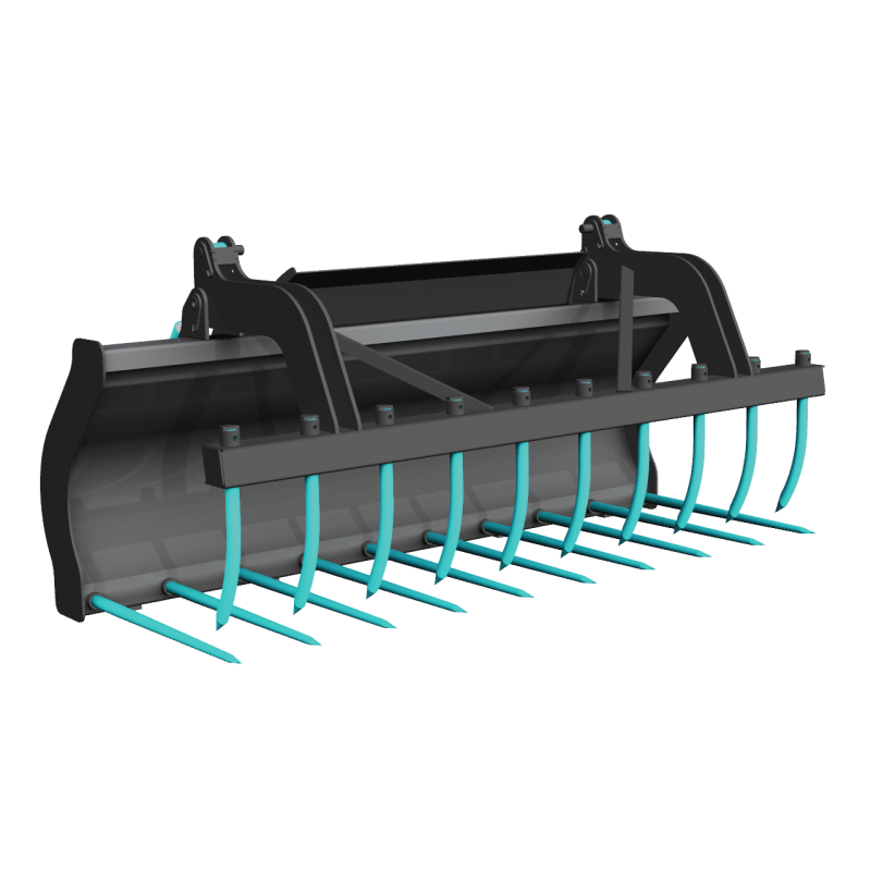 Fourche à fumier renforcée pour travaux lourds avec grappin tout équipé de dents en acier forgé pour chargeurs, tracteurs et télescopiques ayant une puissance de 100 hp et plus