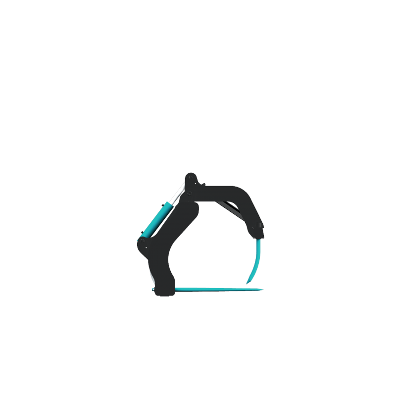 Ouverture maximale pour le travail contre les murs. En position ouverte, les dents du grappins restent en retrait de celles de la fourche.