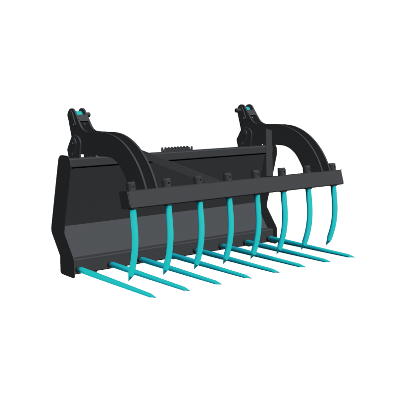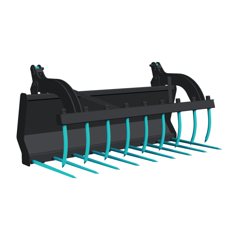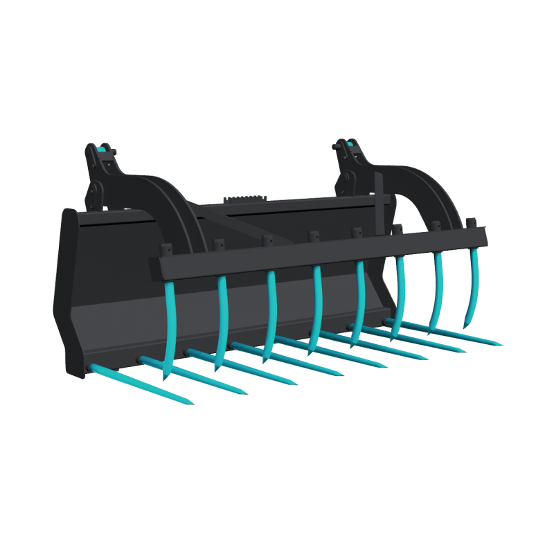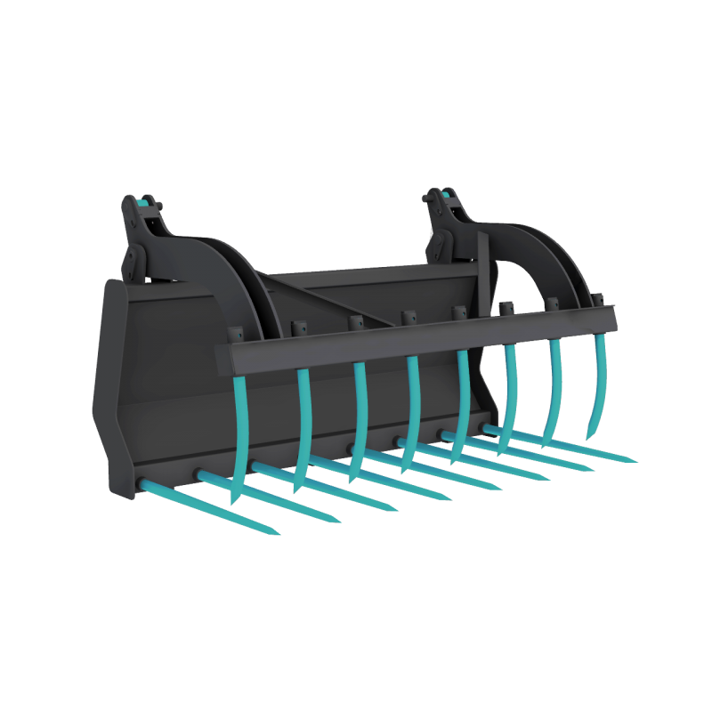 Fourche à fumier à grappin et dents forgées spécial pour tracteurs et chargeurs de 80 hp à 130 hp