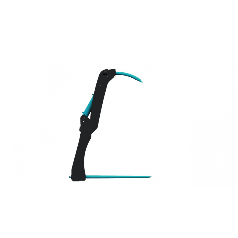 Ouverture maximale pour le travail contre les murs. En position ouverte, les dents du grappins restent en retrait de celles de la fourche.